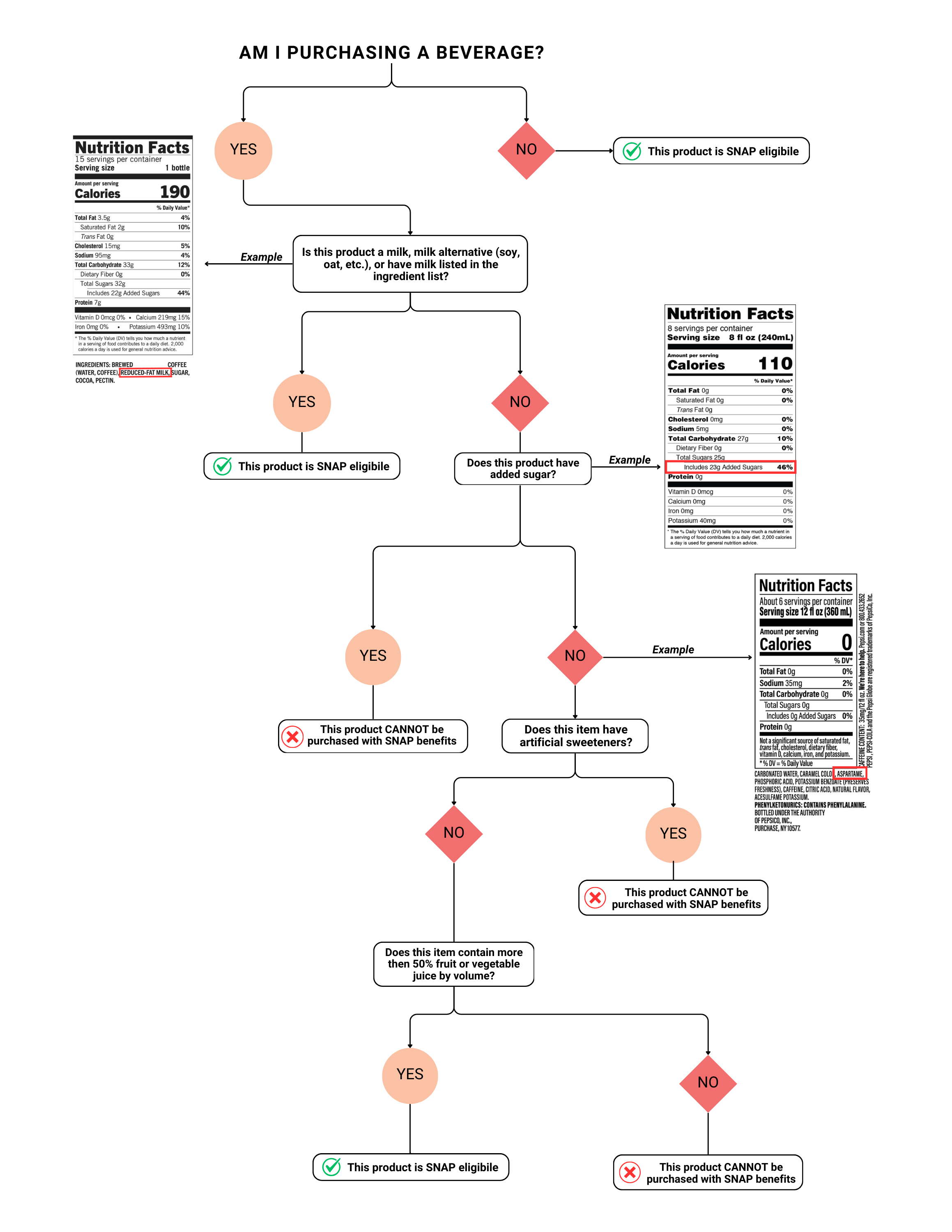 - Please refer to this Beverage Matrix (coming soon) to see which products will not be eligible for purchase with SNAP benefits on March 1, 2026